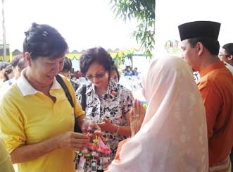 Memberikan Bunga Lotus kepada Wakil Walikota Batam, Ir. Ria Saptarika
