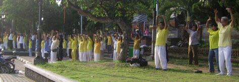 (Minghui.org) Pada hari Minggu 21 Oktober 2007, sekitar 300 lebih praktisi Bali berkumpul di Bale Budaya Klungkung Bali guna saling menyemangati satu sama lain antar sesama praktisi di dalam melakukan tiga hal dengan baik. Praktisi dari delapan kabupaten tersebut dengan serius belajar Fa bersama, saling berdiskusi, berbagi pengalaman, latihan bersama dan klarifikasi. Acara tersebut dimulai dari jam 9:00 pagi sampai 6:00 sore waktu setempat.