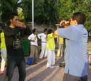 Usai belajar Fa bersama para praktisi mengadakan latihan Gong