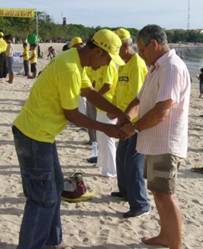 (Minghui.org) Seperti telah diketahui bahwa telah terjadi pelanggaran HAM besar-besaran di China yang menimpa rakyatnya yang tidak bedosa. Setelah 20 Juli 1999 penganiayaan secara kejam telah menimpa praktisi Falun Gong di China karena keteguhannya dalam mempertahankan keyakinanya terhadap prinsip “Sejati-Baik-Sabar”. Banyak anak-anak telah kehilangan keluarganya. Orang tua mereka di bawa ke kamp-kamp kerja paksa, dipenjara, kemudian disiksa sampai meninggal bahkan organ tubuh mereka pun diambil secara paksa dan di jual dengan harga mahal. Salah satu kisahnya termuat didalam sebuah drama yang berjudul “Pasir Kuning Bersimbah Darah”. Minggu 18 Februari 2007 yang bertepatan dengan Imlek kembali dipentaskan untuk yang ke dua kalinya dan membuat haru ratusan pengunjung Pantai Kuta.