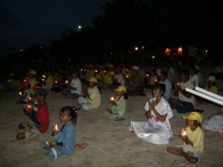 Nyala lilin bersama telah mengakhiri acara pementasan drama “Pasir Kuning Bersimbah Darah”. Suasana gelap mulai menyelimuti pantai kuta dan para pengunjung satu persatu meninggalkan arena latihan.