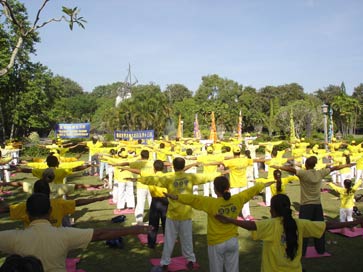 Pada jam 14.30, sekitar 250 orang praktisi dari berbagai kabupaten di Bali berkumpul di lapangan Puputan Badung Denpasar untuk memperingati dan merayakan Hari Falun Dafa Sedunia. Beberapa bendera aneka warna bergambar lambang Falun telah ditancapkan mengelilingi lapangan itu. Juga terdapat dua spanduk ucapan selamat ulang tahun kepada Guru dan Falun Dafa.