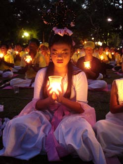 Setelah melakukan Fa Zheng Nian, acara terakhir adalah penyalaan lilin bersama. Suasana khidmat yang haru menyentuh begitu terasa saat berlangsungnya acara penyalaan lilin tersebut. Ratusan nyala lilin bercahaya keemasan menambah keindahan dan kesakralan suasana di petang itu.