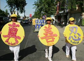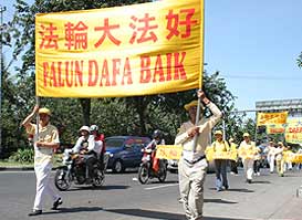 (Minghui.org) Pada tanggal 18 Agustus 2007, sekitar 200 praktisi Falun Gong dari berbagai daerah di Indonesia mengadakan pawai di Jalan Mayjen Sungkono, Surabaya. Selain bertujuan untuk memperkenalkan keindahan Dafa, pawai ini juga bertujuan untuk mengklarifikasi fakta kepada masyarakat setempat bahwa Falun Dafa adalah baik, serta menyerukan dihentikannya penindasan yang sudah berlangsung selama delapan tahun.