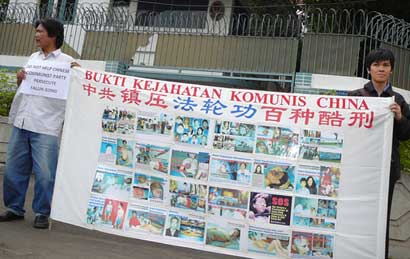 Penangkapan 22 praktisi Falun Gong Thailand yang sedang mengadakan aksi di depan kedutaan besar China dan membagikan brosur di Bangkok, menuai protes keras dari praktisi Falun Gong Indonesia. Sebanyak 10 perwakilan praktisi Falun Gong Indonesia menyampaikan nota protes ke kedutaan besar Thailand di Jakarta. Aksi ini mendapat pengawalan dari pihak kepolisian Jakarta yang berkoordinasi langsung dengan para praktisi. Setelah 30 menit aksi berlangsung, seorang perwakilan praktisi kemudian diterima oleh kedutaan besar Thailand. Dari pertemuan tertutup ini, kedutaan besar Thailand berjanji akan menindaklanjuti permasalahan ini ke Bangkok pada hari itu juga. Aksi para praktisi ini kemudian membubarkan diri usai terjadinya kesepakatan dengan kedutaan besar Thailand.