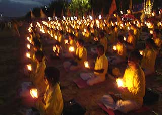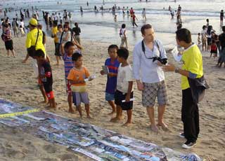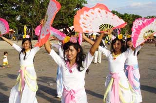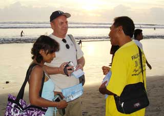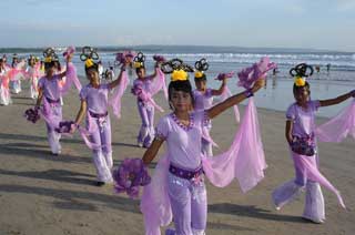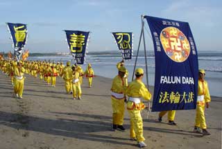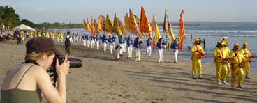 (Minghui.org) Sekitar 500 praktisi Falun Dafa dari seluruh kabupaten se-Bali kembali berkumpul di Pantai Kuta pada hari Minggu tanggal 11 Mei 2008 untuk merayakan Hari Falun Dafa (13 Mei) dan Hari Ulang Tahun Guru Li Hongzhi. Mereka mengadakan pawai di sepanjang pantai, melakukan Lima Perangkat Gerakan Latihan Gong, menyebar brosur serta mengklarifikasi fakta secara lisan kepada para wisatawan asing maupun domestik yang sedang berkunjung ke tempat wisata tersebut.