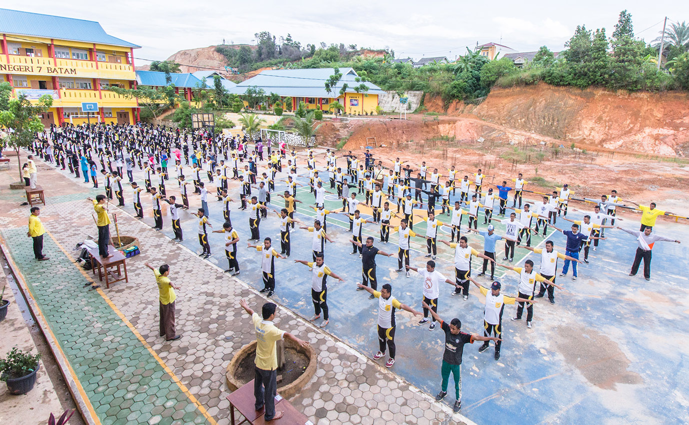 Pada tanggal 10 Desember 2016, praktisi Falun Dafa Pulau Batam, Kepri, mengajarkan latihan kepada ratusan pelajar SMK Negeri 7 Batam. Setelah sesi latihan, praktisi menjelaskan tentang penganiayaan terhadap Falun Dafa di Tiongkok serta meminta dukungan para pelajar untuk membantu mengakhiri kekejaman ini.