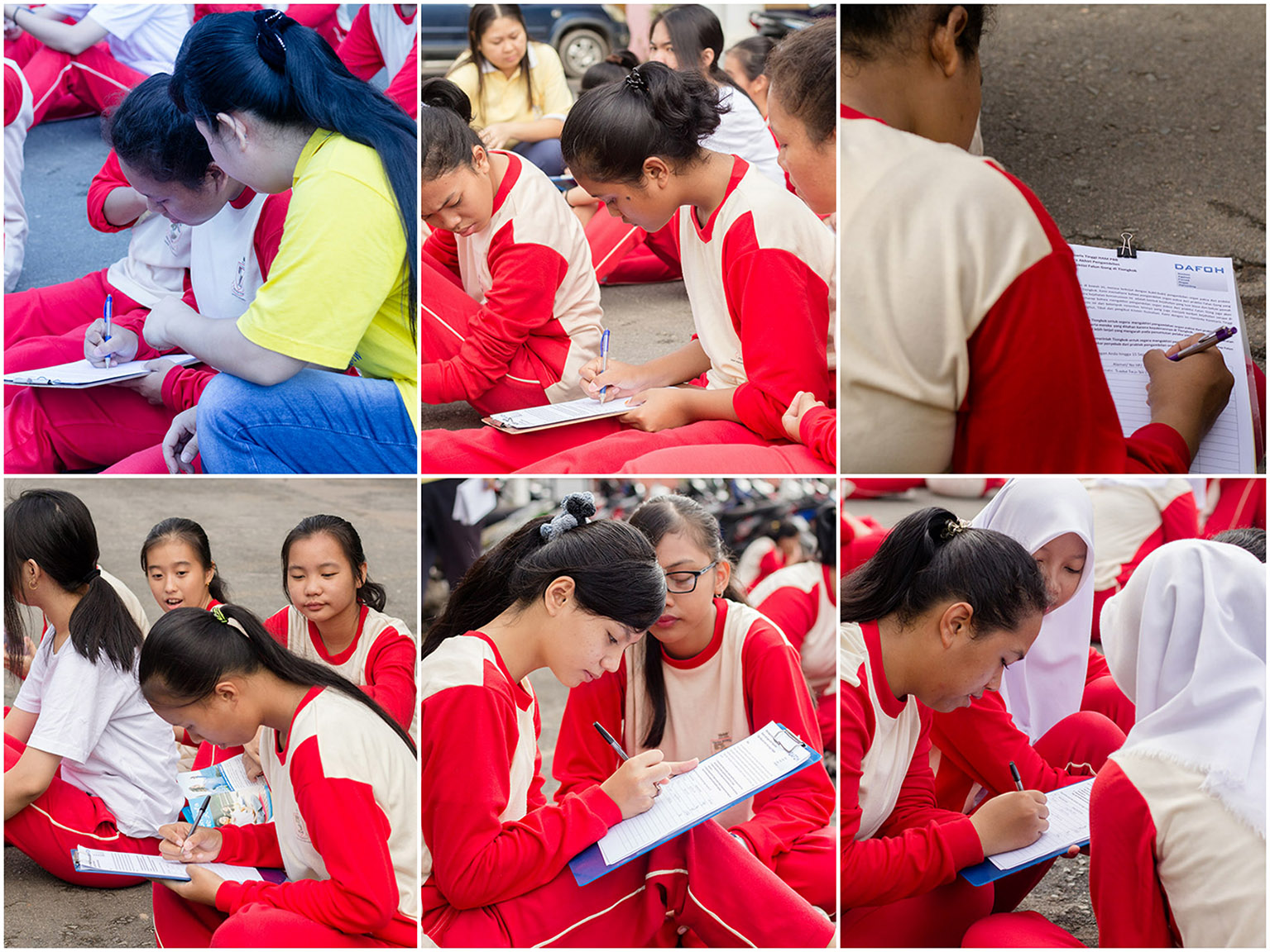 Ainun Dara Syafitiri, 16 tahun, jurusanTeknik Jaringan Akses: saat latihan agak mual. Sebelumnya tangan dan kaki terasa kaku, tapi setelah melakukan latihan terasa agak segar.