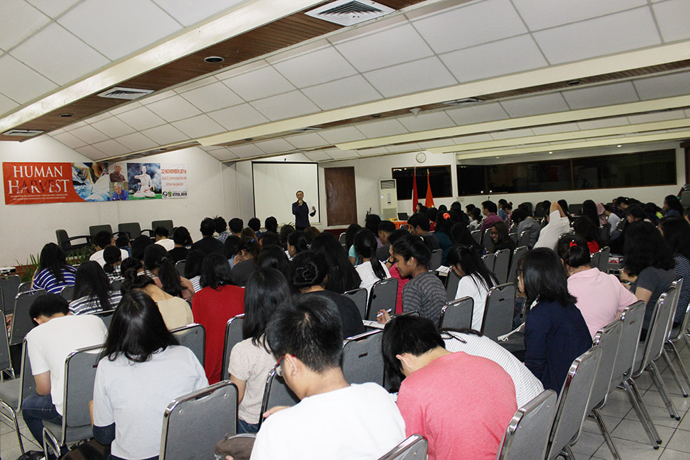 (Minghui.org) Para relawan Dafoh (Doctors Against Forced Organ Harvesting), bekerja sama dengan Unit Kegiatan Mahasiswa Oase, mengadakan pemutaran film Human Harvest di Aula Gedung D Universitas Katolik Indonesia (UNIKA) Atma Jaya, Jakarta, pada Selasa, 22 November 2016.