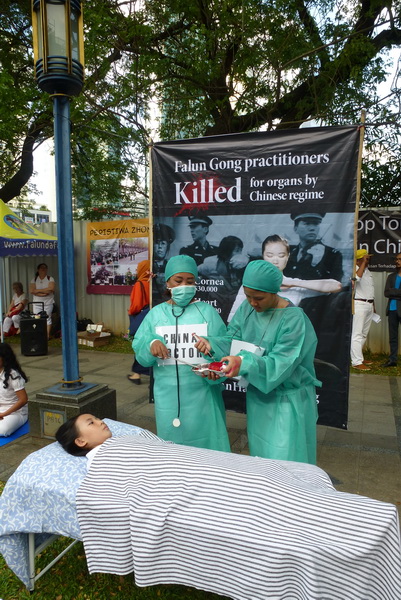 Praktisi juga menggelar teatrikal persidangan Jiang Zemin, mantan diktator dan pemimpin PKT saat itu. Saat ini lebih dari 200.000 warga Tiongkok telah melaporkan kejahatan Jiang ke Kejaksaan dan Mahkamah Agung Tiongkok, selain itu Jiang Zemin telah dituntut secara pidana di lebih dari 20 negara. Akan menjadi hal yang tak terelakkan bahwa para pelaku kejahatan mendapatkan ganjaran hukuman tanpa kecuali.
