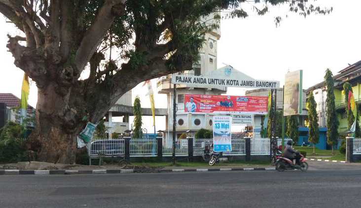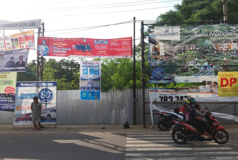 Spanduk “T-banner” Hari Falun Dafa Sedunia di Jambi