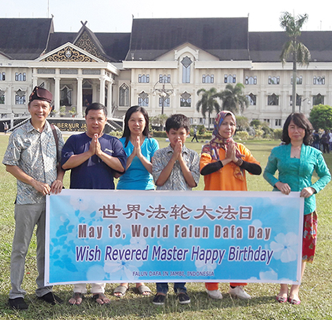 Praktisi Falun Dafa di Jambi mengucapkan Selamat Ulang Tahun kepada Guru Li terhormat
