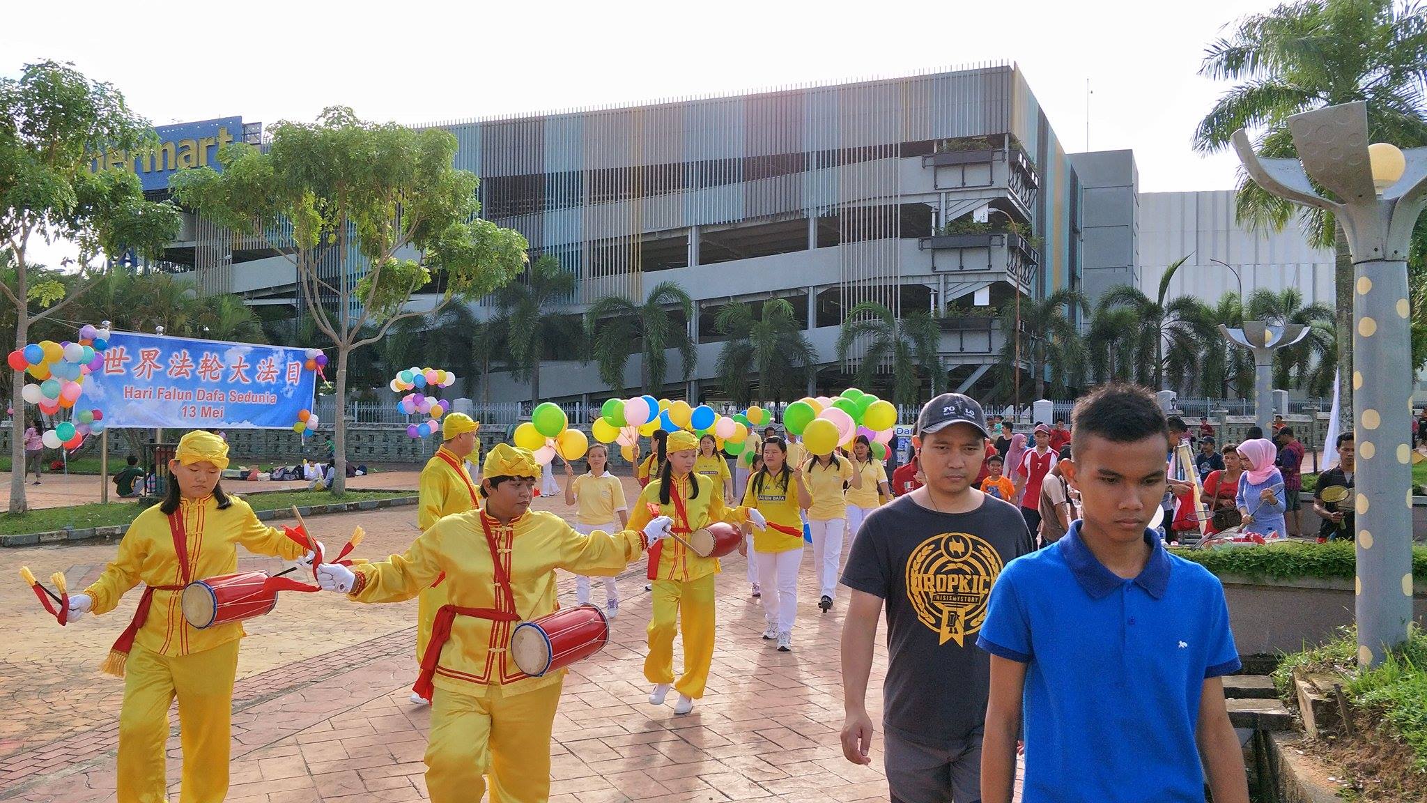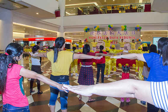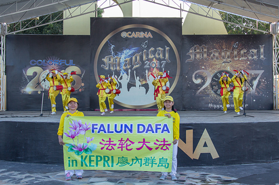 Pada tanggal 12 Mei 2017, praktisi mendapat fasilitas dari manajemen Mega Mall, Batam Center, Batam, untuk merayakan Hari Falun Dafa Sedunia serta memperkenalkan latihan ini kepada para pengunjung pusat perbelanjaan tersebut. Praktisi menampilkan barisan genderang pinggang, peragaan latihan dan sesi mempelajari latihan Falun Dafa. Beberapa praktisi membagikan brosur kepada para pengunjung mall.