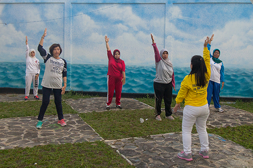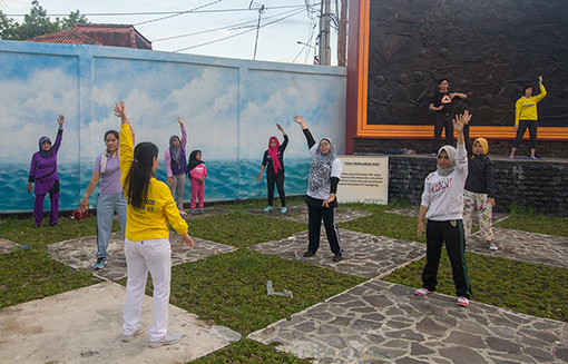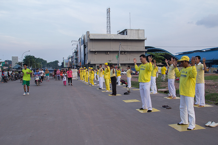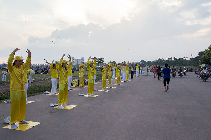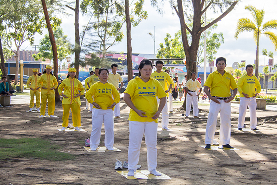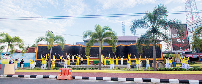 Praktisi Pulau Batam memperagakan latihan Falun Dafa di Sentosa Perdana, Batu Aji, Batam