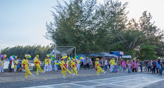 Pada sore hari, 14 Mei 2017, praktisi mengadakan puncak acara Hari Falun Dafa Sedunia di kawasan wisata Ocarina, Batam Center. Praktisi memulai kegiatan dengan mengadakan latihan bersama, kemudian menampilkan genderang pinggang dengan mengelilingi kawasan wisata dan tampil di atas panggung.