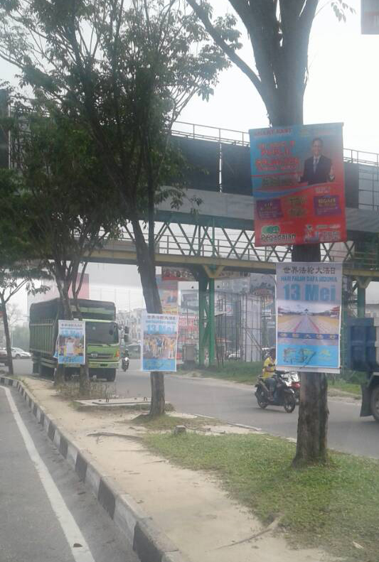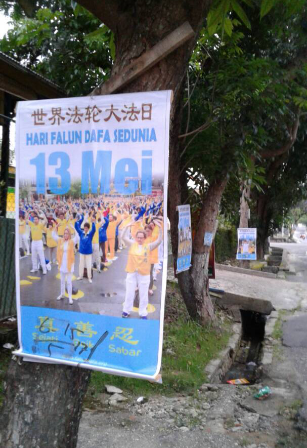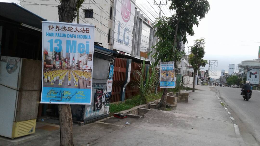Spanduk “T-banner” Hari Falun Dafa Sedunia di Pekanbaru, Riau