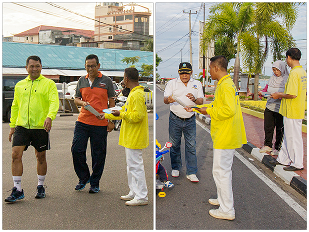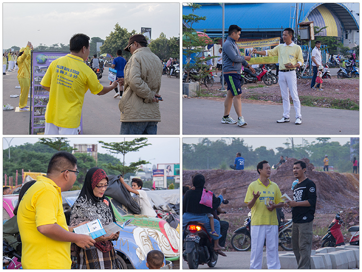 (Minghui.org) Praktisi Falun Dafa dari Batam, Tanjung Pinang, Pekanbaru dan Jambi mengadakan berbagai kegiatan untuk menyambut Hari Falun Dafa Sedunia. Khusus praktisi Batam, Kepulauan Riau mencanangkan bulan Falun Dafa dari tanggal 15 April hingga 15 Mei 2017, dengan menyelenggarakan perayaan di beberapa tempat di Pulau Batam.Hari Falun Dafa Sedunia jatuh pada tanggal 13 Mei di setiap tahun, dan pada tahun ini merupakan peringatan 25 tahun Falun Dafa diperkenalkan kepada publik, serta hari ulang tahun Guru Li Hongzhi (pencipta Falun Dafa).