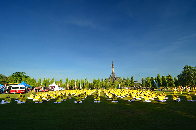 (Minghui.org) Minggu, 30 April ratusan pengikut Falun Dafa atau Falun Gong di Bali memperingati 18 Tahun Permohonan Damai 25 April di Beijing Tiongkok di lapangan Bajra Sandi Renon Denpasar.