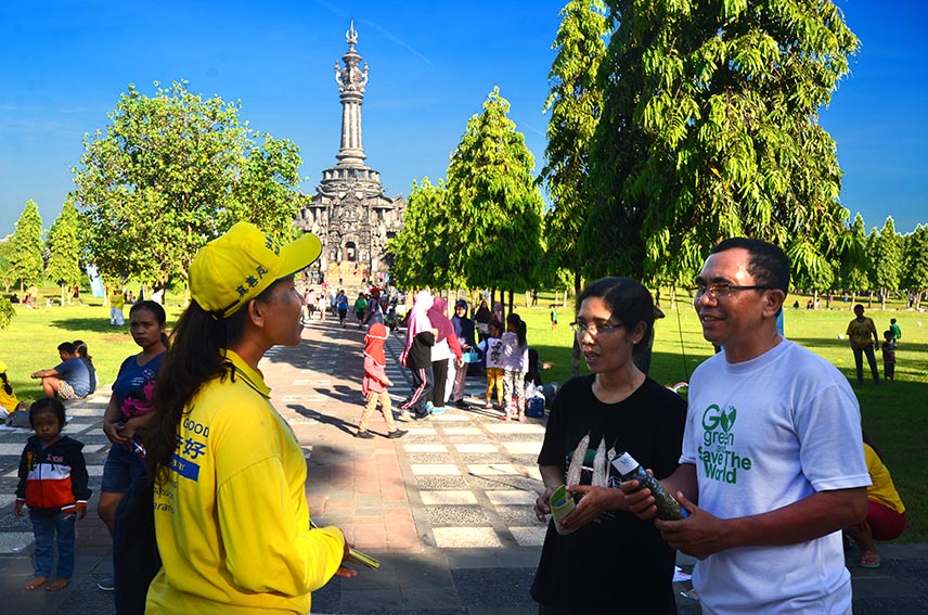 Beberapa praktisi menyebarkan Tabloid Minghui dan brosur serta menjelaskan kepada khalayak yang sedang berada di lokasi kegiatan fakta kebenaran tentang Falun Gong, penganiayaan brutal dan pengambilan organ dari praktisi yang masih hidup di Tiongkok. Beberapa tokoh masyarakat Bali kebetulan berjalan-jalan di sekitar lokasi kegiatan dan memperoleh materi informasi.