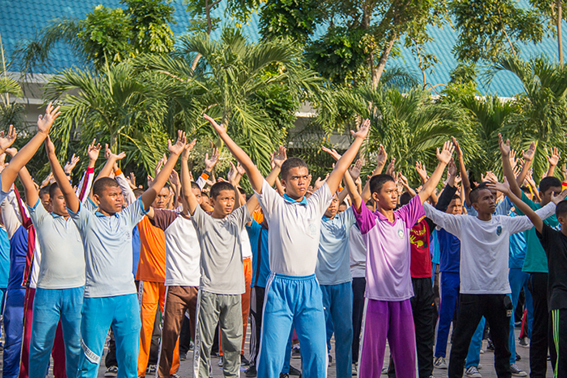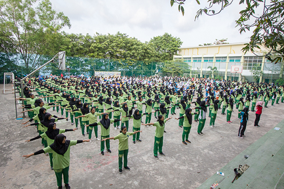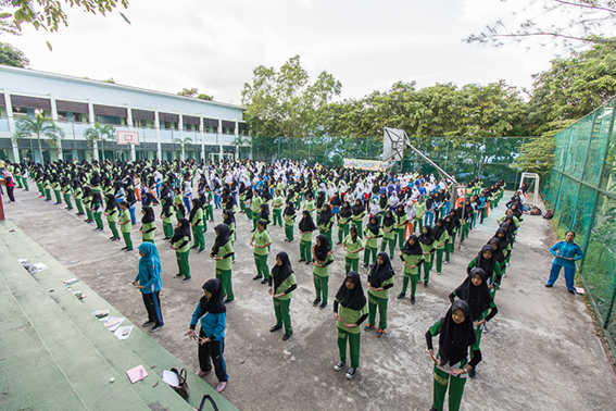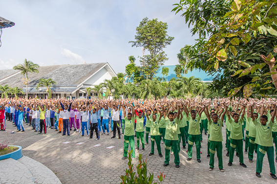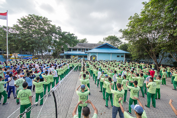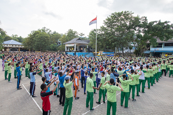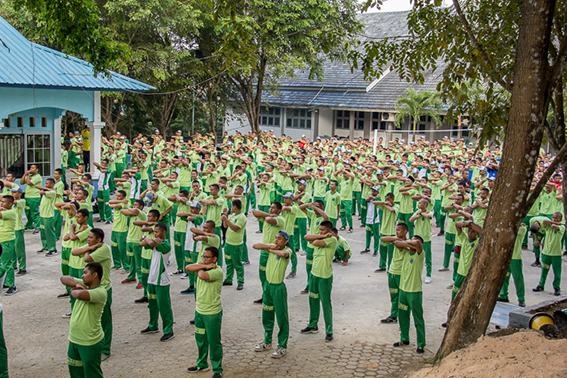Sekitar 1200 siswa SMK Negeri 1 Pulau Batam, Kepulauan Riau, mempelajari latihan Falun Dafa