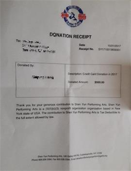 Lampiran: "Tanda bukti donasi Shen Yun" palsu