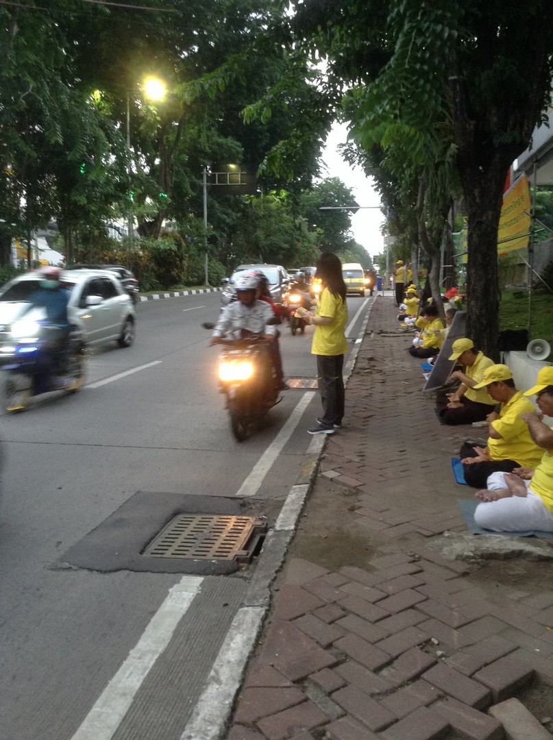 (Minghui.org) Pada Sabtu sore (8/12), menjelang peringatan 70 tahun Hari HAM Internasional, para praktisi Falun Dafa di Surabaya mengadakan aksi damai di depan Konsulat Jenderal Tiongkok, menyerukan agar Partai Komunis Tiongkok segera mengakhiri penindasan terhadap Falun Dafa dan para praktisinya.