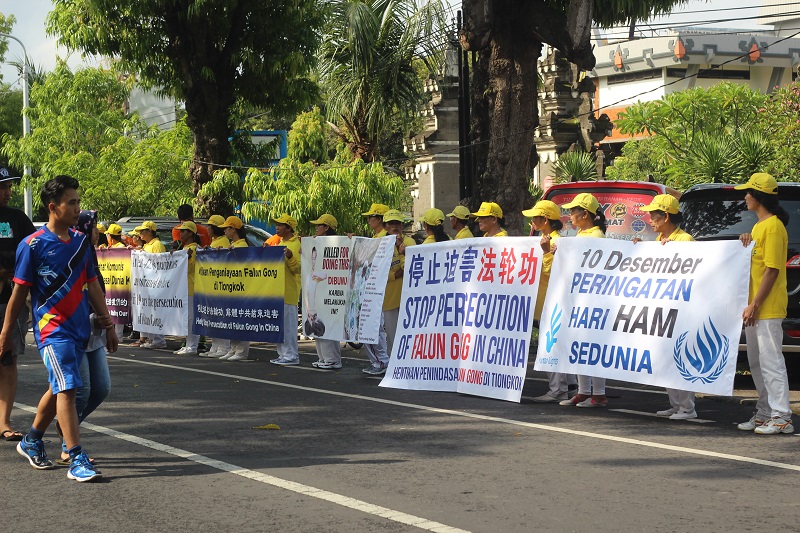 Dalam perayaan hari HAM Internasional kali ini, praktisi seluruh Bali menyerukan melalui spanduk besar “ Hentikan Penindasan, Pemenjaraan, Penyiksaan, Pembunuhan Praktisi Falun Gong di Tiongkok”.