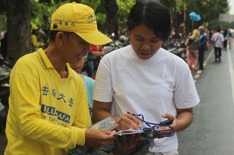 Sepanjang rute pawai, para praktisi membagikan brosur, menjelaskan fakta kebenaran Falun Dafa dan penganiayaan yang terjadi di Tiongkok serta melakukan pengumpulan petisi. Banyak anggota masyarakat dengan senang hati menerima brosur, mendengar penjelasan dan memberi dukungan tandatangan.