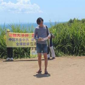 Pengenalan Falun Dafa dan klarifikasi fakta diadakan di Dream Beach yang ramai dikunjungi wisatawan mancanegara terutama wisatawan Tiongkok Daratan.
