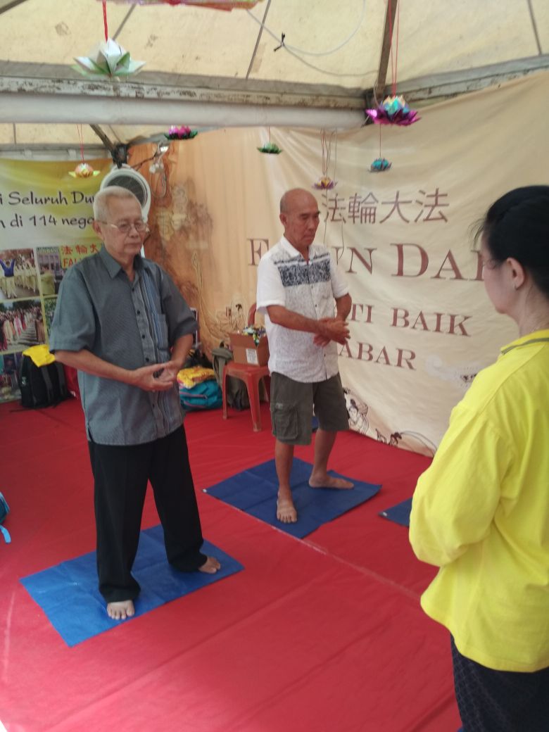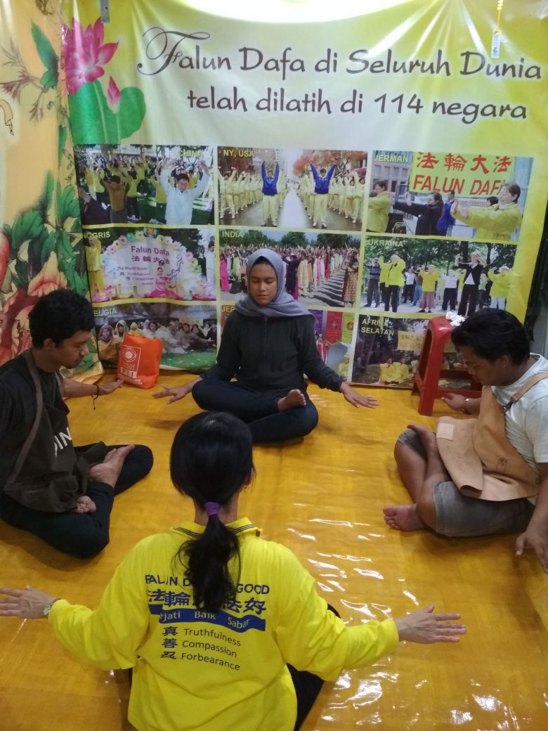 Pengunjung Bazar Panglima Polim belajar perangkat kelima Falun Dafa