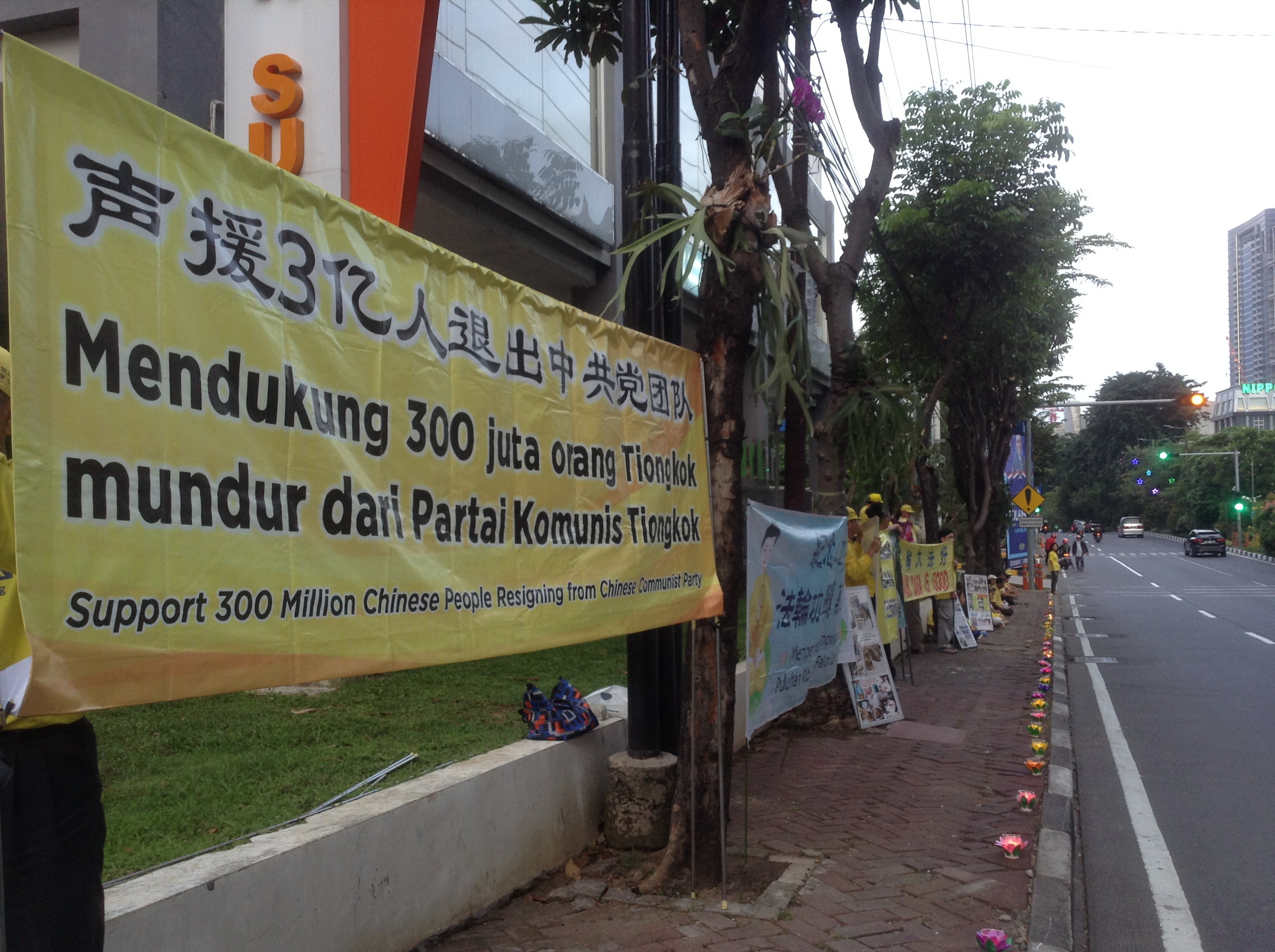 (Minghui.org) Pada Sabtu sore tanggal 21 April 2018, di depan Kedubes Tiongkok di Jakarta, para praktisi Falun Dafa menggelar aksi damai memperingati “Permohonan Damai 25 April” di Beijing sembilan belas tahun yang silam.