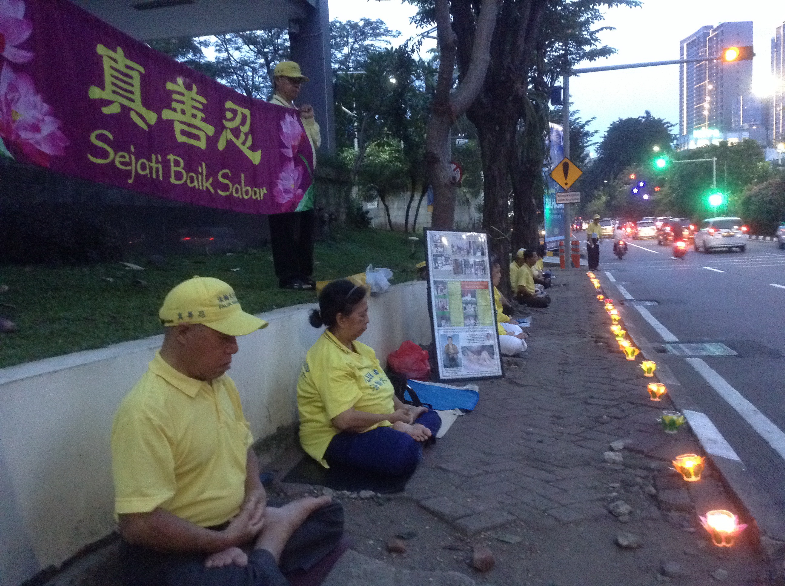 Aksi damai diakhiri dengan nyala lilin bersama untuk mengenang ribuan praktisi Dafa yang telah dianiaya hingga meninggal karena keyakinannya pada Sejati-Baik-Sabar dan sekaligus menyuarakan harapan, agar pemerintah Tiongkok segera mengakhiri penindasan yang sama sekali tak berdasar - terhadap Falun Gong.