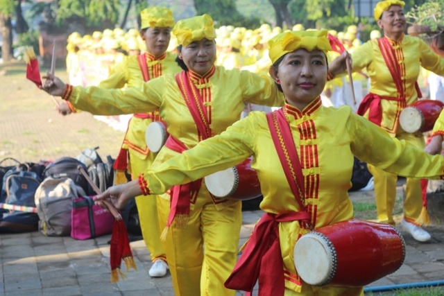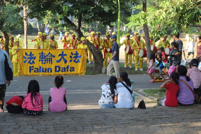 Sekitar 200 praktisi berpartisipasi dalam kegiatan latihan bersama Falun Gong yang diringi musik lembut dan indah. Ketika pengunjung mendengar bahwa latihan yang lembut ini mulai dianiaya sejak tahun 1999 oleh rejim komunis Tiongkok, bahkan rejim telah mencangkok organ tubuh para praktisi yang ditahan di kamp-kamp maupun penjara, banyak dari pengunjung yang terkejut dan menggelengkan kepala.