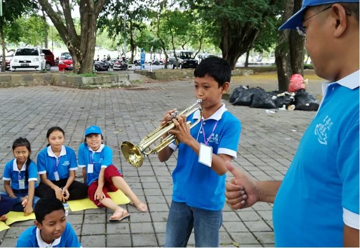 “Daripada bermain game, lebih baik bermain alat musik. Kami memperkenalkan marching band bukan berarti kami langsung meminta mereka untuk bergabung ke dalam tim marching band, tapi kami mengharapkan agar mereka merasakan manfaat dari bermain musik.” Kata Jaya, yang juga tergabung dalam Tian Guo Marching Band di Bali.