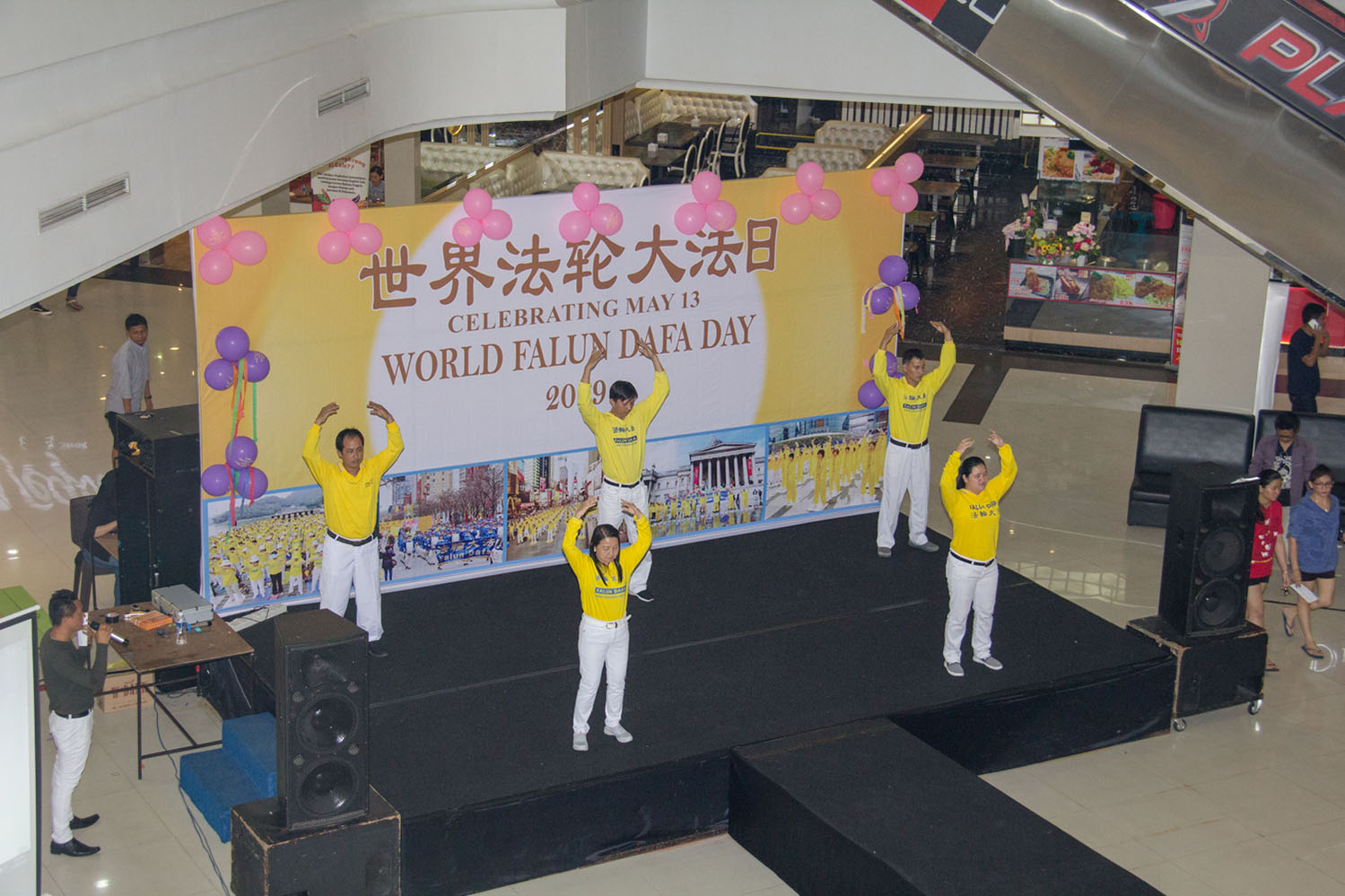 Pada tanggal 28 April 2019, praktisi telah memulai perayaan Hari Falun Dafa pertamanya di pusat perbelanjaan Kepri Mall. Praktisi menampilkan genderang pinggang, peragaan latihan, menayangkan foto dan video kegiatan Falun Dafa di seluruh dunia, dan beberapa praktisi berbagi pengalaman mereka yang memperoleh manfaat kesehatan dari latihan ini.