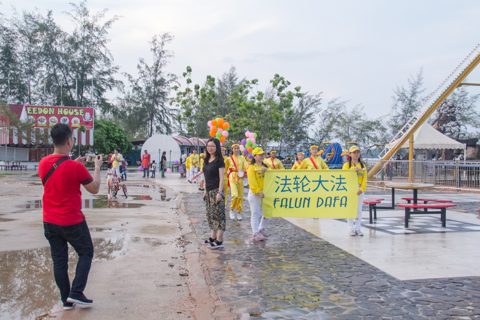 Sehari sebelum Hari Falun Dafa Sedunia, 13 Mei, praktisi Falun Dafa di Batam mengadakan perayaan di tempat wisata New Ocarina pada tanggal 12 Mei 2019. Walaupun sempat turun hujan lebat, namun tidak menggoyahkan hati praktisi untuk tetap melanjutkan kegiatan mereka.