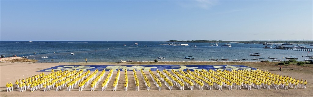 (Minghui.org) Pada Jumat tanggal 20 September, sehari sebelum berlangsungnya Konferensi Berbagi Pengalaman Kultivasi Falun Dafa Indonesia tahun 2019 di Denpasar, para praktisi yang hadir - mengikuti kegiatan bersama membentuk aksara Mandarin dari “Falun Dafa”. Kegiatan dilangsungkan pada sore hari di Pantai Mertasari, Sanur, Bali.