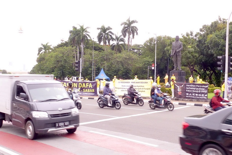 (Minghui.org) Pada Sabtu sore tanggal 12 Desember 2020, praktisi Falun Gong di Jakarta mengadakan aksi damai menggelar spanduk-spanduk yang mengungkap kejahatan Partai Komunis Tiongkok (PKT) terhadap rekan-rekan mereka di Tiongkok, serta menyerukan agar penindasan yang telah berlangsung lebih dari 21 tahun tersebut – segera dihentikan.