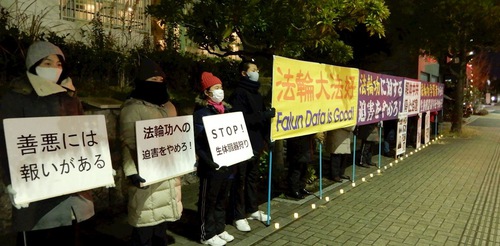 (Minghui.org) Praktisi Falun Dafa dari Prefektur Kumamoto berkumpul di konsulat Tiongkok yang terletak di prefektur Nagasaki dan Fukuoka pada tanggal 31 Desember 2020. Mereka mengangkat spanduk dan papan dengan informasi tentang penganiayaan brutal selama 21 tahun terhadap latihan spiritual damai.