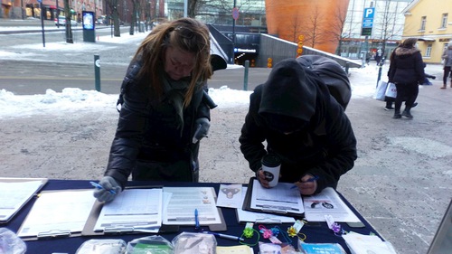 Suhunya -6 derajat celcius, tetapi tidak menghalangi orang untuk pergi keluar. Orang-orang yang mengenali Falun Gong datang untuk menyambut para praktisi. Mereka yang telah mengetahui tentang penganiayaan langsung datang ke meja menandatangani petisi guna mendukung upaya damai praktisi untuk mengakhiri penganiayaan di Tiongkok.