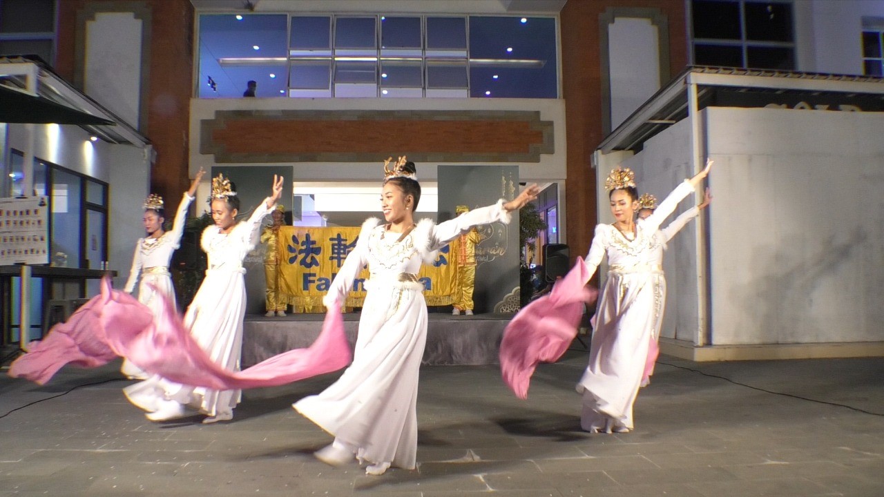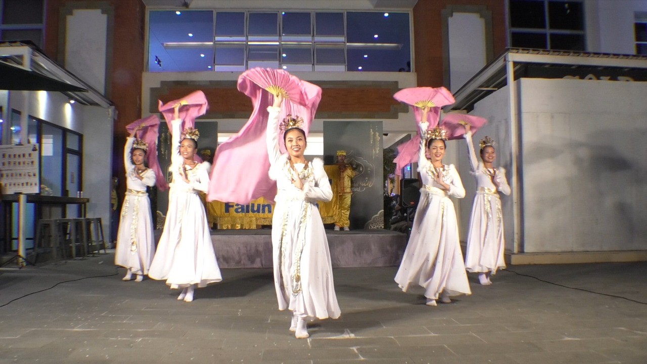 Acara dimulai pukul 18.30 wita, diawali dengan penampilan team Genderang Pinggang membawakan lagu Falun Dafa Hao (Falun Dafa Baik).