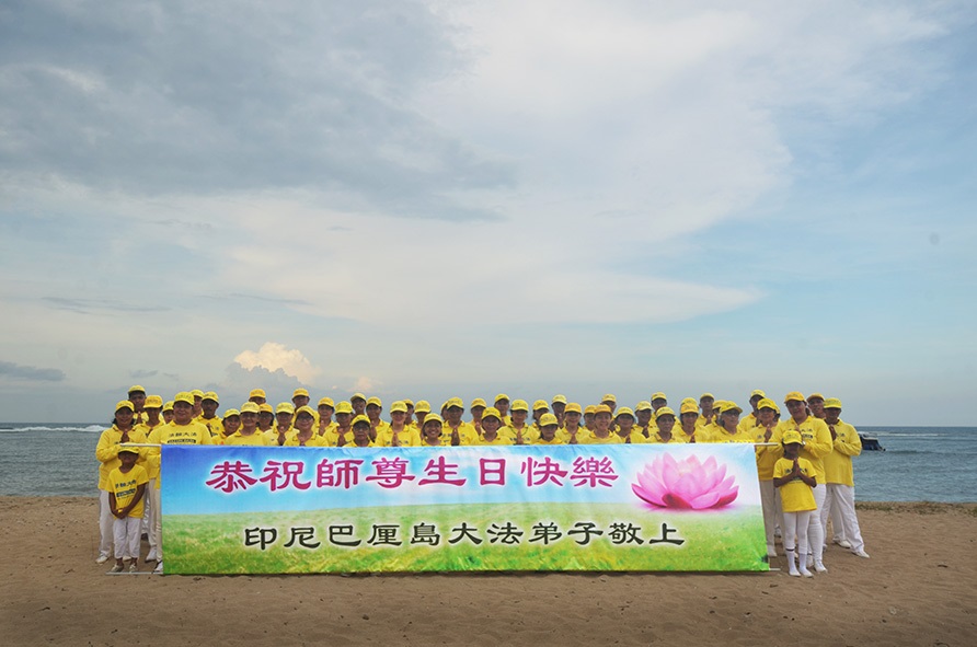 Praktisi Falun Dafa dari Bali dengan hormat mengucapkan Selamat Ulang Tahun kepada Shifu Li Hongzhi yang belas kasih