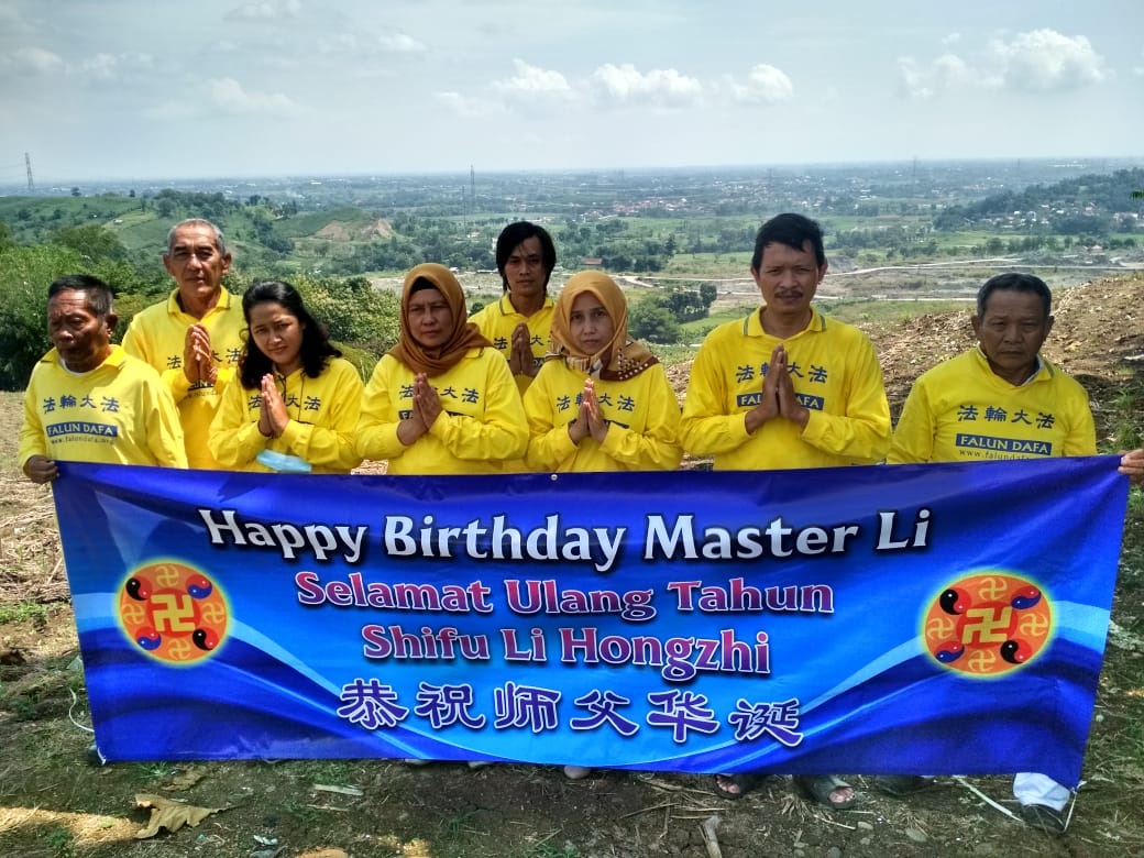Praktisi Falun Dafa dari Pemalang dengan hormat mengucapkan Selamat Ulang Tahun kepada Shifu Li Hongzhi yang belas kasih