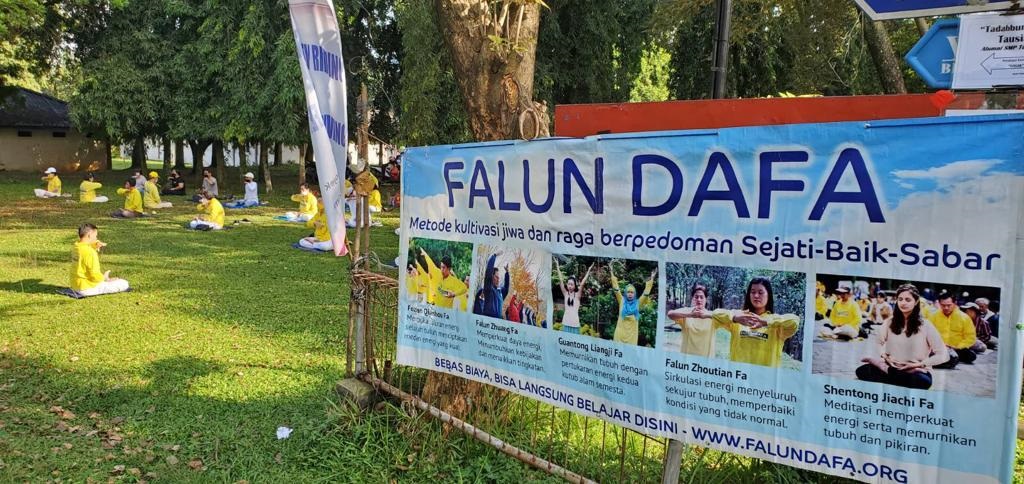 (Minghui.org) Pada Minggu pagi, 23 Januari 2022, praktisi mengadakan kegiatan bersama di Bumi Perkemahan Cibubur, Jakarta untuk memperkenalkan latihan Falun Dafa (disebut pula Falun Gong), latihan kultivasi jiwa dan raga yang berlandaskan pada prinsip universal Sejati-Baik-Sabar.