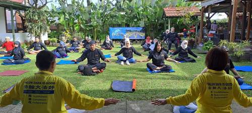 Memperkenalkan latihan Falun Dafa kepada mantan pimpinan PT. Telkom Indonesia dan keluarga mereka (10/12)
