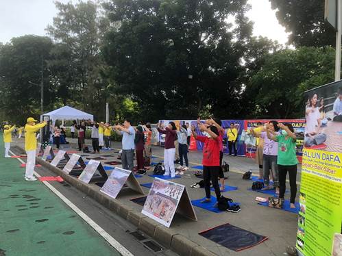 Saat Car Free Day, praktisi lama maupun peserta baru berlatih Falun Dafa bersama