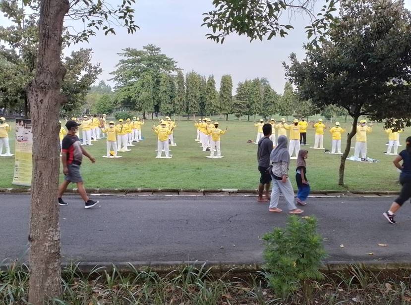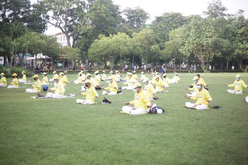 Praktisi Falun Dafa berlatih bersama