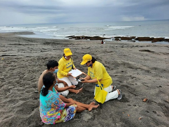 Pengunjung pantai menandatangani petisi untuk mengakhiri kejahatan kemanusiaan Partai Komunis Tiongkok (PKT)