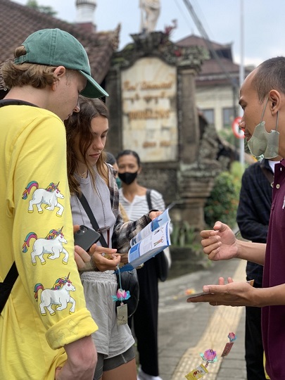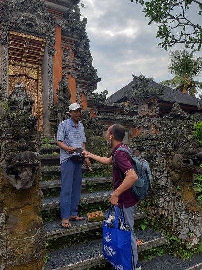 (Minghui.org) Dalam rangka menyambut 30 tahun disebarkannya Falun Dafa di dunia, praktisi muda di Bali mengadakan kegiatan bersama di daerah Ubud dan Tegallalang, Kabupaten Gianyar pada Minggu, 27 Maret 2022. Kegiatan diawali dengan membagikan brosur serta menginformasikan fakta tentang Falun Dafa kepada para wisatawan maupun penduduk setempat di sekitar Puri Agung Ubud.