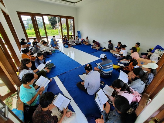Setelah kegiatan di sekitar Puri Agung Ubud usai, para praktisi muda lalu melanjutkan kegiatan bersama di Tegallalang dengan membaca buku Zhuan Falun (buku bimbingan utama Falun Dafa) dan berbagi pengalaman mereka dalam menerapkan prinsip Sejati-Baik-Sabar di kehidupan sehari-hari.